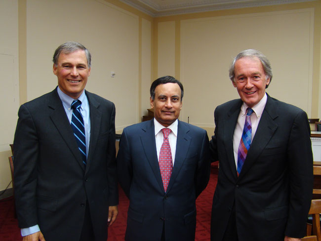 Rep. Inslee, Ambassador Haqqani, and Chairman Markey after the briefing