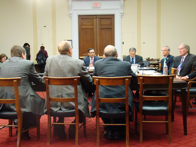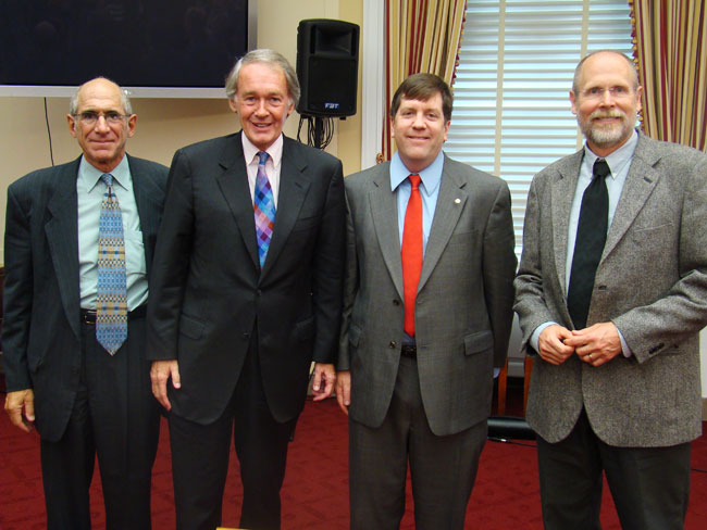 Dr. Michael Oppenheimer, Chairman Markey, Dr. Michael Wehner, and Dr. Thomas Patterson after the briefing
